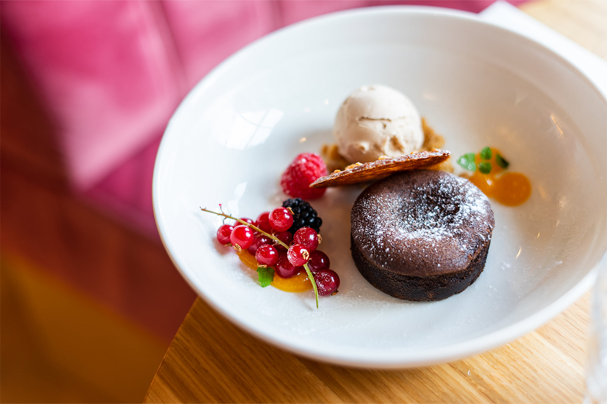 - Chocolate vulcano | hazelnut ice cream | spiced caramel sauce