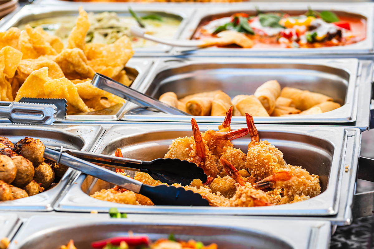 Onbeperkt gebruik maken van het internationale buffet, de frisdrank, bier, wijn, koffie en thee.