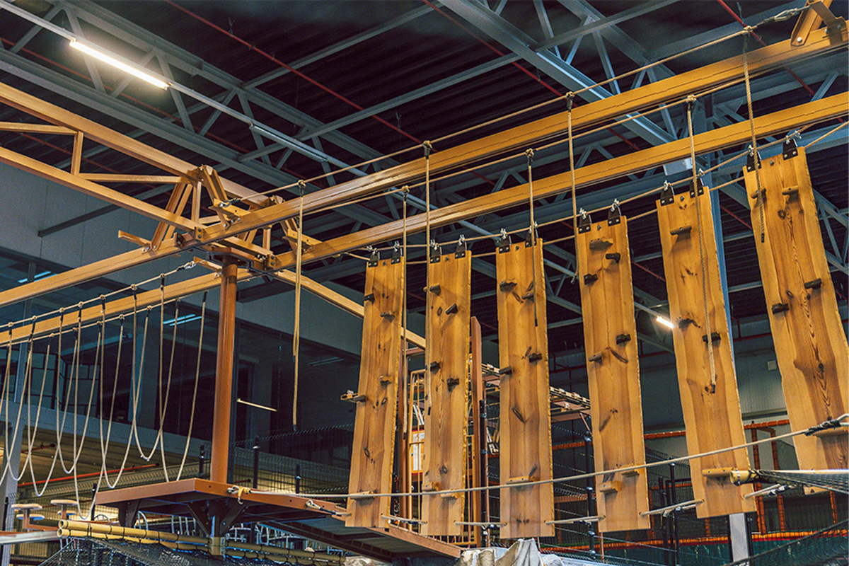 Daarnaast zijn er een touwenparcours, een zes meter hoge klimmuur, een zwevende swingride en een acht meter hoge droptower voor de echte waaghalzen. Ouders kunnen ontspannen in de Foodcorner, terwijl de kinderen zich uitleven.