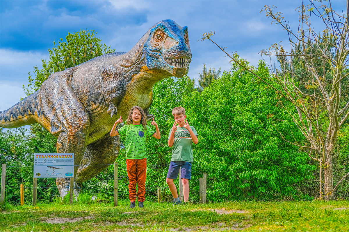 De Triceratops, de Velociraptor en natuurlijk de Tyrannosaurus Rex… ze zijn allemaal te vinden in "Het Krijtwoud" van Landgoed Tenaxx! In totaal zijn er meer dan dertig dinosaurussen, nagemaakt op ware grootte. Ze staan verscholen in het bos, dus je moet ze wel zoeken! Wanneer je op pad gaat in het Krijtwoud kun je zomaar verrast worden door een spectaculair gebrul. Probeer ze allemaal te vinden!
