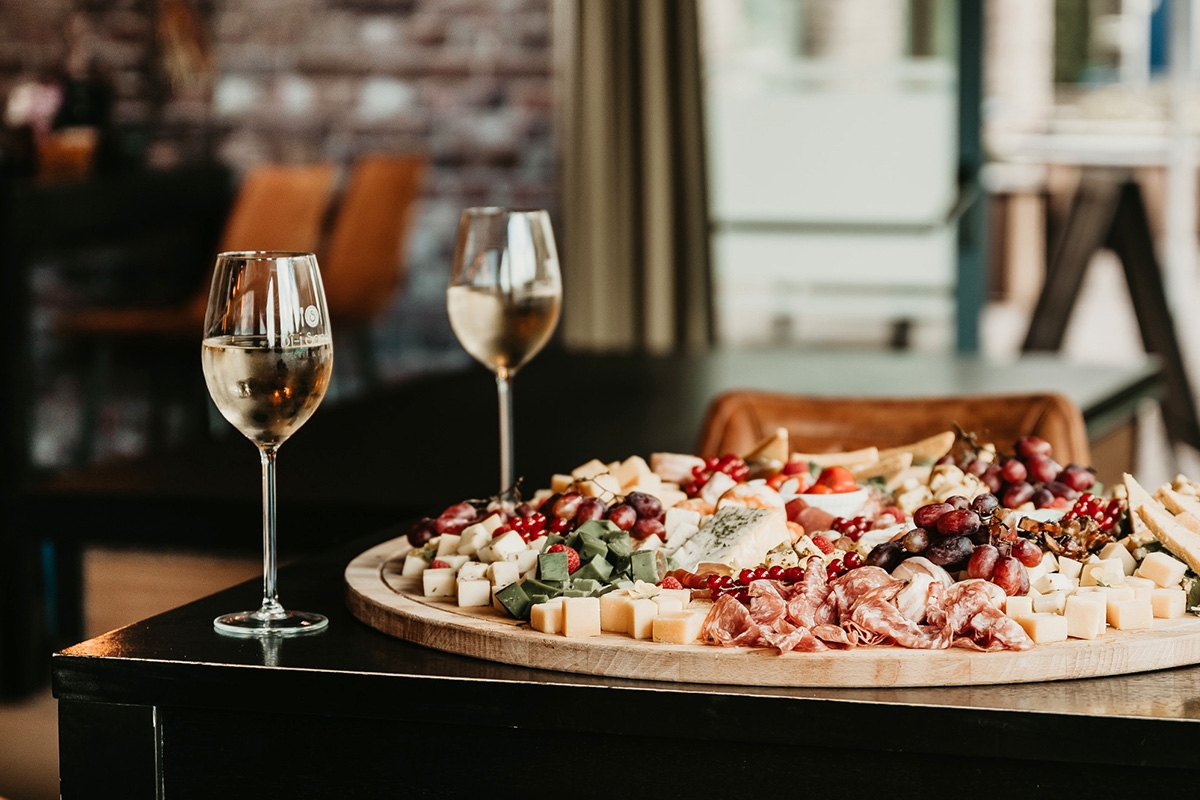 - Het borrelarrangement bestaat uit een middelgrote tapasplank + 2 glazen fris/wijn/bier naar keuze